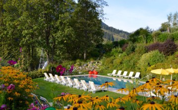 Zentraler, geht es, glauben wir, nicht mehr. Es ist wirklich mitten im Ortskern, in der Fußgängerzone. Fast sieht es so aus, als hätte man den Orstkern um das Haus herum angelegt. Keine 5 Fussminuten zur Schattbergbahn und zur Kohlmaisbahn ist es der ideale Ausgangspunkt für Wanderer, Biker und Skifahrer. Im schönen Gastgarten kann man wunderbar verweilen und das bunte Treiben in der Fußgängerzone beobachten. Wer es lieber ruhiger mag, begibt sich einfach ein paar Etagen weiter nach oben und genießt die herrliche Ruhe im Garten über den Dächern von Saalbach auf dem Dach des Saalbacher Hofs.