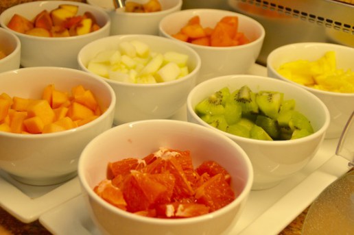 Das 5-Elemente-Restaurant im 1. Stock mit großer Panoramafensterfront ist in die fünf, auch farblich, unterschiedlich eingerichteten Bereiche Licht, Wasser, Erde, Metall und Feuer unterteilt. Unsere Favoriten waren Wasser und Licht. Das Frühstück bietet für jeden Geschmack etwas. Von frisch zubereiteten Eierspeisen über selbstgemachtes Müsli, Frischkäsepralinen, bis zum grünen Powersmoothie, ist alles dabei. Bei schönem Wetter kann man auch auf der Sonnenterrasse frühstücken, was wir sehr gerne in Anspruch genommen haben.